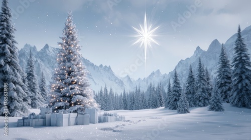 Serene Winter Landscape with Snow-Covered Trees and Starry Sky