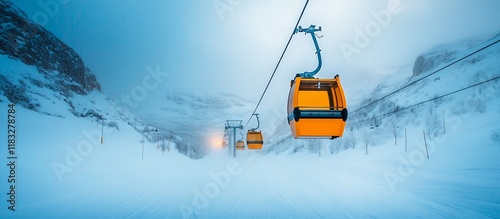 Serene Winter Mountain Cable Car Ride
