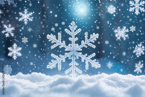 Serene Winter Snowflakes Background with Calming White and Blue Ethereal Texture