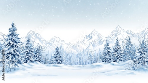 Serene Winter Wonderland Snowy Mountains Forest Christmas Background