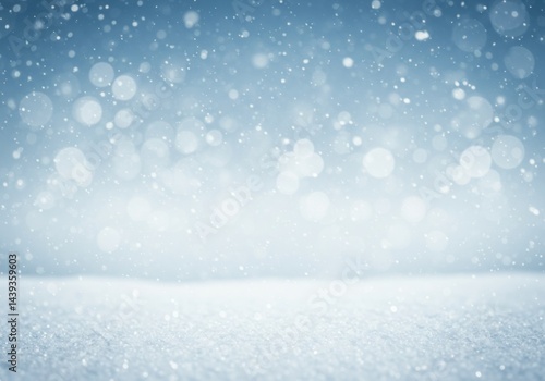 Serene winter wonderland backdrop with falling snow and bokeh lights