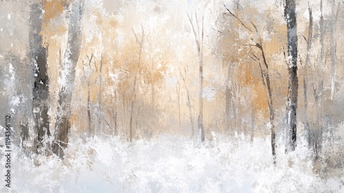 Serene Winter Woodscape Abstract Painting Neutral Tones