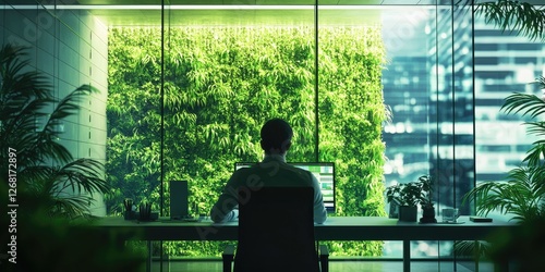 Serene Workspace with Lush Indoor Plants and Natural Light through Glass Walls in Modern Office Environment