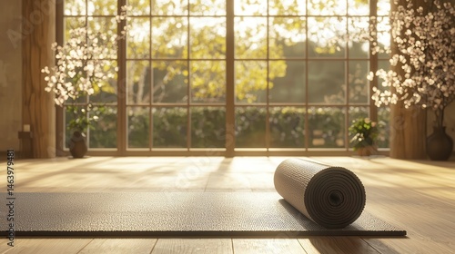 Serene Yoga Studio Sunlight Through Window Mat Ready