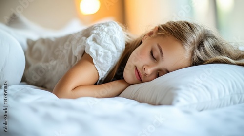Serene Young Girl Sleeping Peacefully on Cozy Bed with Soft Pillows
