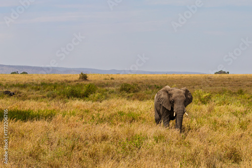 Serengeti National Park, Tanzania: African Elephant Grazing in the Savanna.