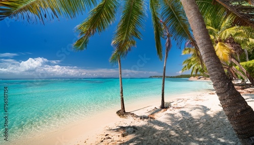 serenity at tropical paradise coconut trees swing over clear turquoise waters and soft golden sand