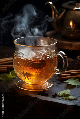 Serenity in a Cup: A Calm, Quiet Moment with a Comforting Brew under a Dappled Sunlight
