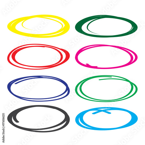 Series of red, yellow, blue, brown, green highlight pen circle, hand draw circles set in various colors.