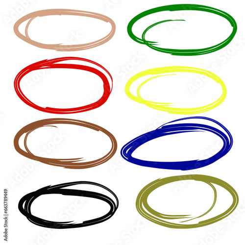 Series of red, yellow, blue, brown, green highlight pen circle, hand draw circles set in various colors.