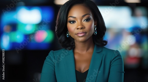 Serious African American television host delivers urgent news covering scandals inquiries and significant updates