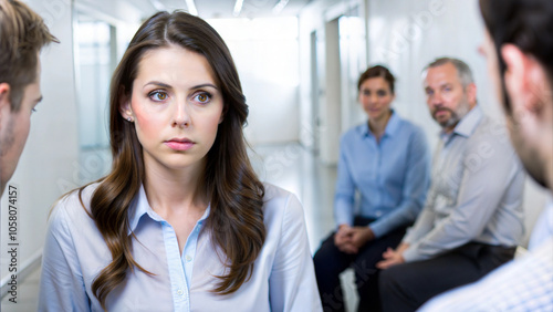 Serious conversation among colleagues in a professional setting with a focused young woman for business themes.