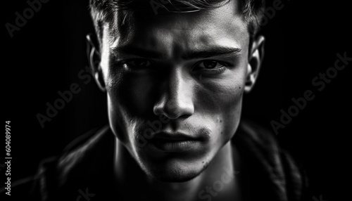 Serious man with dark sadness in close up generated by AI