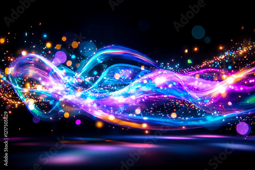 Serpentine Iridescent Light Trails Dance Across the Night Sky