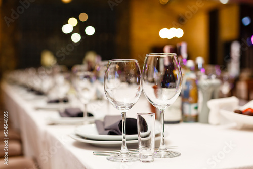 Served dinner table in a restaurant. Restaurant interior