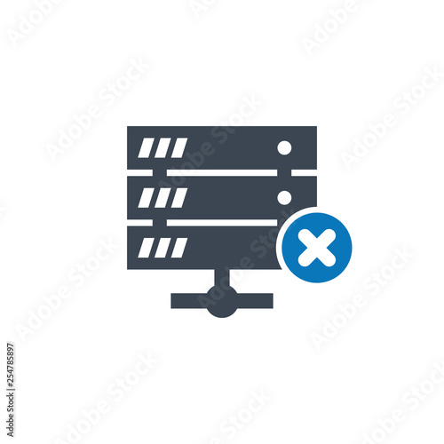 Server icon with cancel sign. Server icon and close, delete, remove symbol