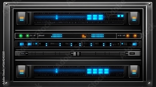 Server Rack with Blue Lights, and Data Center.