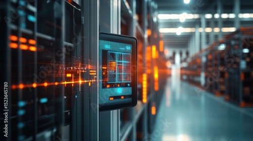 Server rack with digital display. High-tech server room