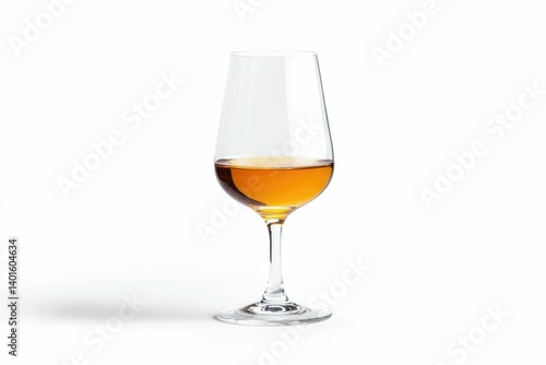 Serving of Amber Liquor in Elegant Glass Against Clean White Background