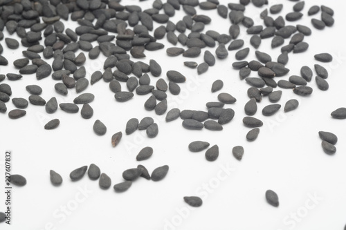 Sésamo negro sobre fondo blanco