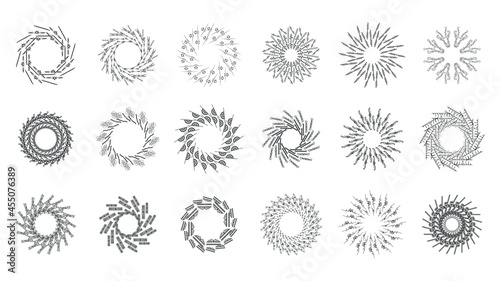 Set Abstract Collection Starburst Sunburst Sunset Black Line Doodle Design Elements Bursting Rays Sunrise Light Radiant Spark Vector Design Style