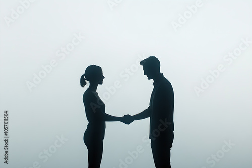 Set against a pale background, a young couple in silhouette holds hands as they engage in a heartfelt gaze, representing connection, potential, and the beauty of young love.