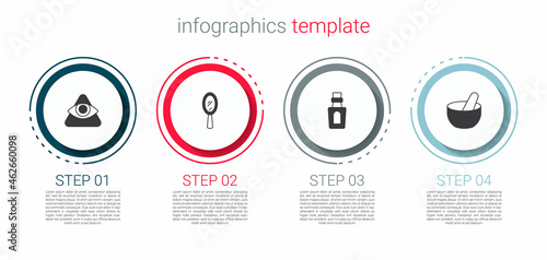 Set All-seeing eye of God, Magic hand mirror, Bottle with potion and Witch cauldron. Business infographic template. Vector