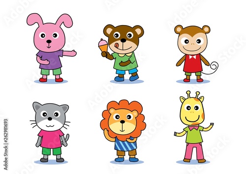 Set Animal Vector Cute. Rabbit, Bear, Monkey, Cat, Lion, Giraffe