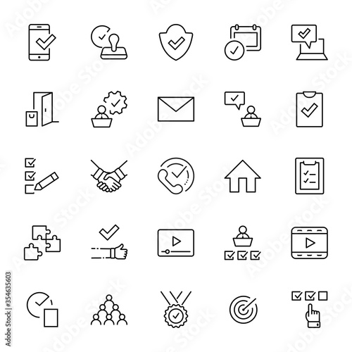 Set Approve Vector Line Icons. Contains such Icons as Quality Check, Protection Guarantee, Accepted Document and more. Editable Stroke. 32x32 Pixels