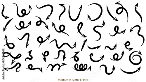 Set arrows pointing in different directions handwritten calligraphy isolated on white background , Flat Modern design, illustration Vector EPS 10