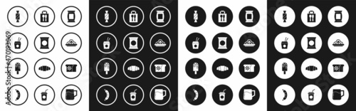 Set Bag or packet potato chips, Asian noodles and chopsticks, Candy, in bowl, Online ordering delivery, Bread toast and Ice cream icon. Vector