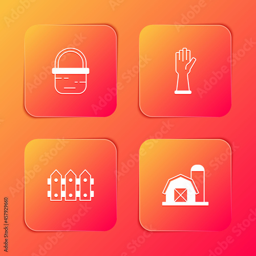 Set Basket, Rubber gloves, Garden fence wooden and Farm house icon. Vector