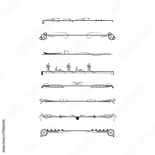 Set Black Simple Line Collection Doodle Border Elements Vector Design Style Sketch Isolated Illustration For Banner