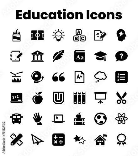 Set Black Solid Education Icons