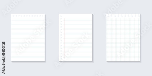 Set Blank white notepaper design. Hand drawn blue lined paper background collection