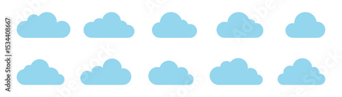 Set blue cloud icons. Cartoon cloud flat design. Weather, sky, climate, atmosphere. Vector illustration and PNG transparent