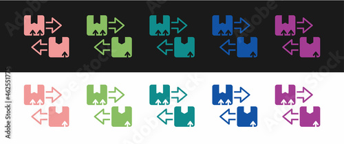 Set Cardboard box with traffic symbol icon isolated on black and white background. Box, package, parcel sign. Delivery, transportation and shipping. Vector