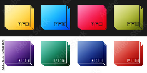 Set Carton cardboard box with traffic symbols icon isolated on black and white background. Delivery and packaging. Transportation and shipping. Vector.