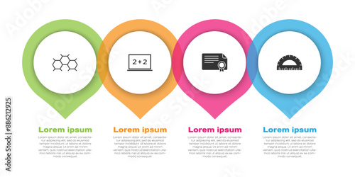 Set Chemical formula, Chalkboard, Certificate template and Protractor. Business infographic template. Vector