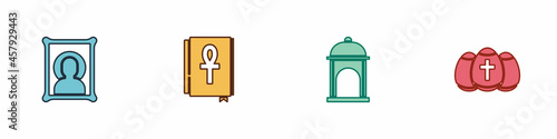 Set Christian icon, Cross ankh book, Muslim Mosque and Easter egg icon. Vector