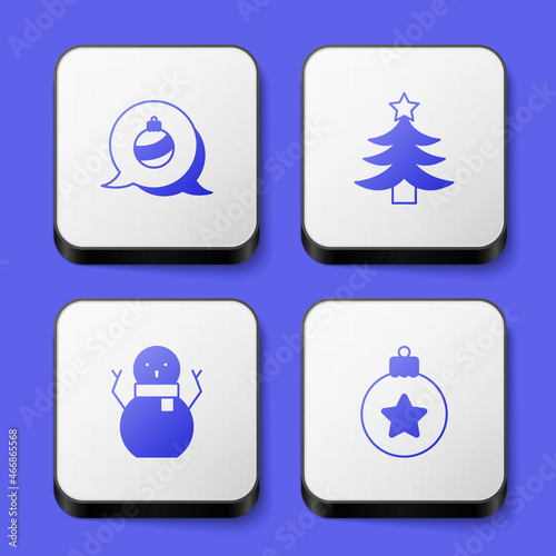 Set Christmas ball, tree, snowman and icon. White square button. Vector