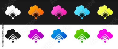Set Cloud with snow icon isolated on black and white background. Cloud with snowflakes. Single weather icon. Snowing sign. Vector.