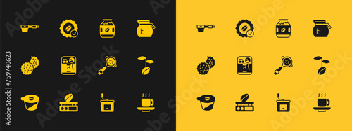 Set Coffee pot, Electronic coffee scales, filter holder, Manual grinder, machine, jar bottle, and Medal for icon. Vector