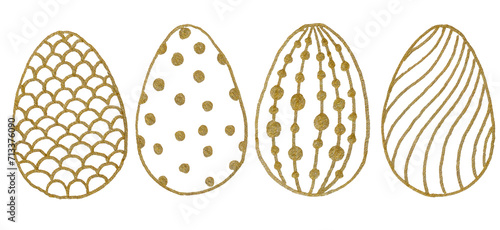 Set collection of hand drawn golden lined easter eggs with different dots, waves, lines.Easter party isolated elements.Isolated