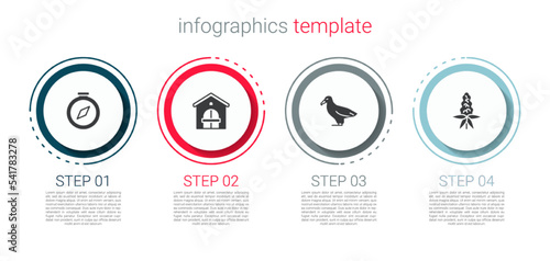 Set Compass, Farm house, Albatross and Lupine flower. Business infographic template. Vector