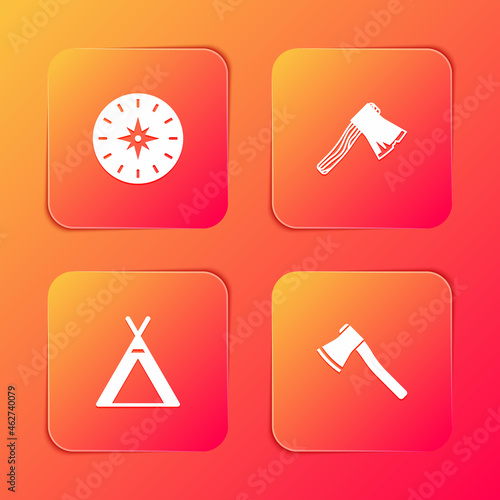 Set Compass, Old wooden axe, Tourist tent and Wooden icon. Vector