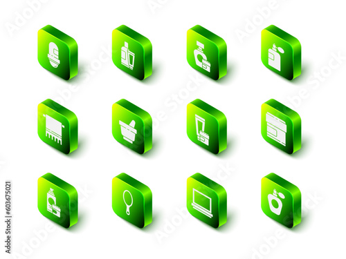 Set Cream or lotion cosmetic tube, Perfume, Makeup powder with mirror and Hand icon. Vector