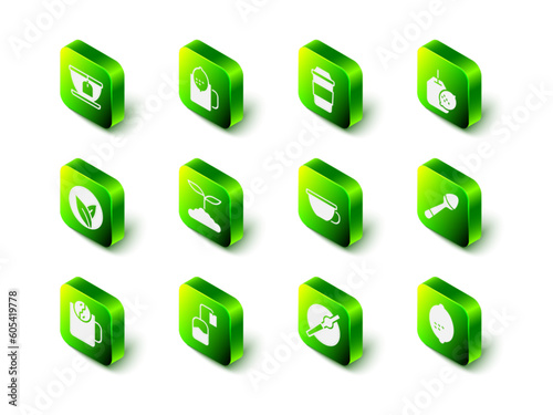 Set Cup of tea with lemon, Tea bag, Teaspoon, Lemon, Cigarette and icon. Vector