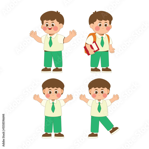 Set cute boy student cartoon character illustration