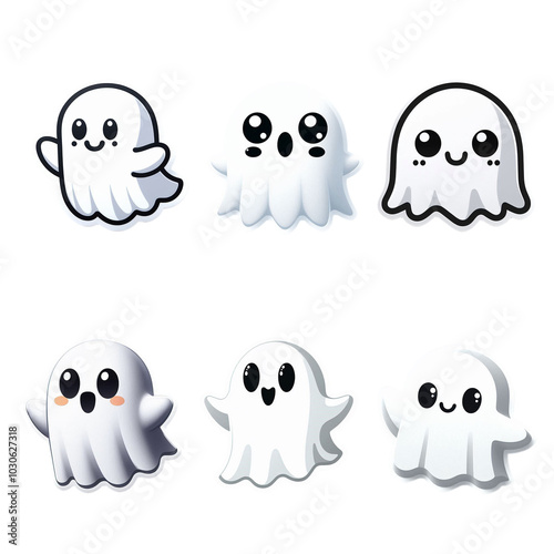 set cute ghost of Halloween, 6 concept style cartoon Character.